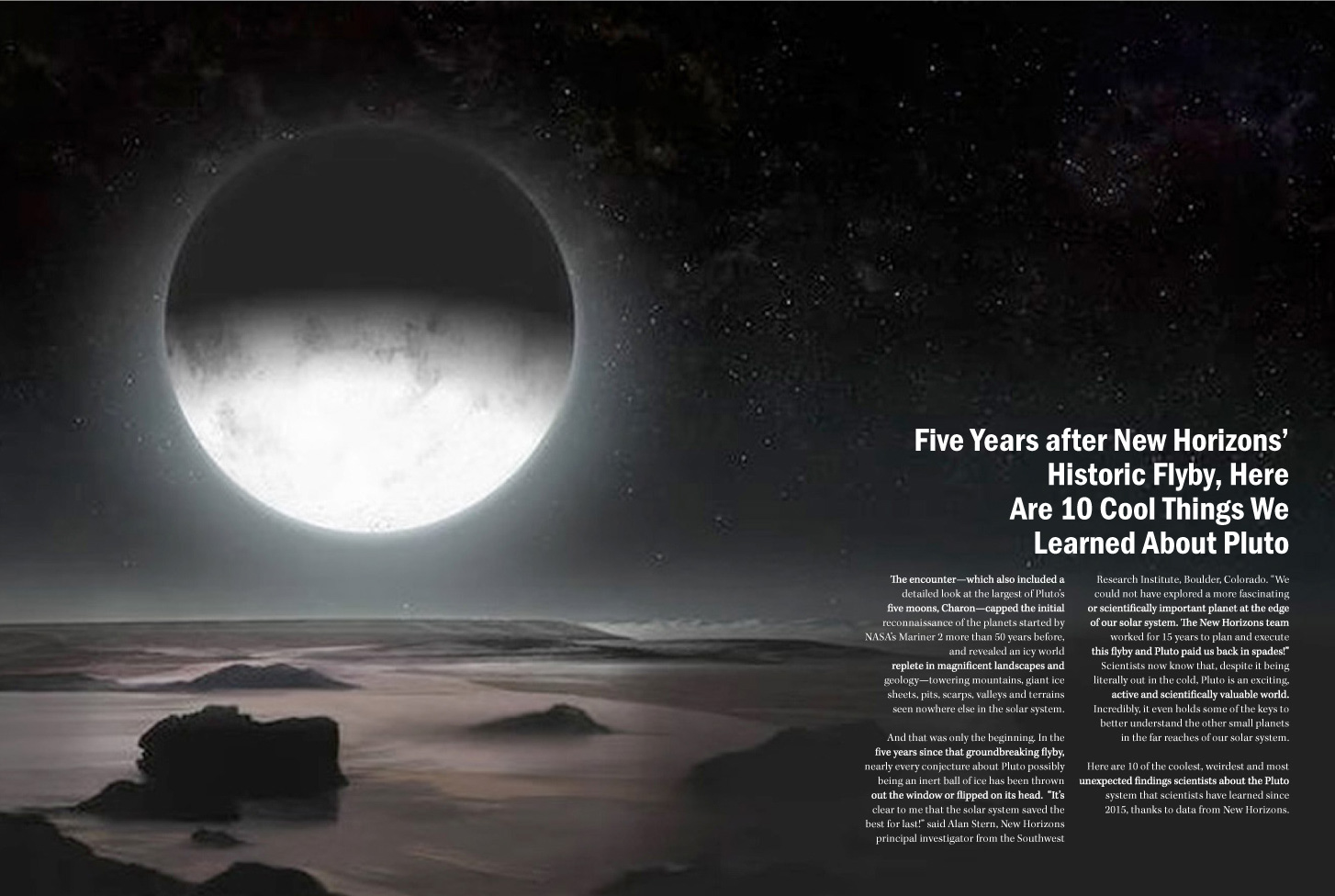 This is a fictional project where I was tasked with creating a fictional article explaining 10 facts about Pluto. Being given body copy and images, I used the principles of publication design to inform readers on the 10 facts about Pluto.